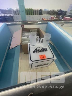 ASAHI ILLUMINATED BOX LIGHT & 40 (APPROX) x ASAHI 400ml HANDLE BEER GLASSES