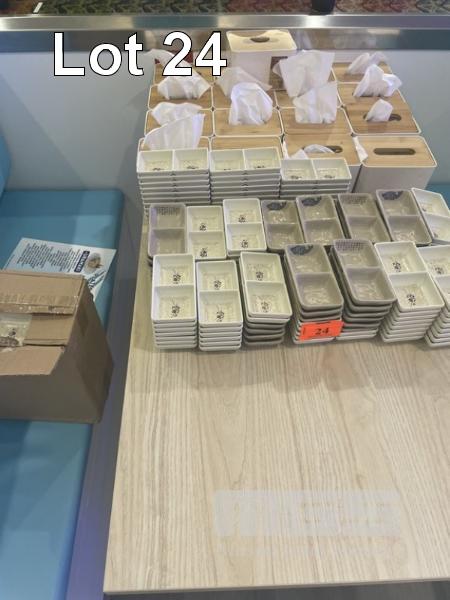 17 x TISSUE BOXES & QUANTITY MELAMINE DOUBLE SAUCE BOWLS