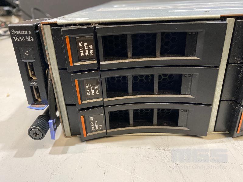 RACKMOUNT SERVER, IBM SYSTEM x3630 M4 (7158FT1), 2U, 2 x XEON E5-2470 @ 2.3GHz, 96GB ECC DDR3 RAM, 2 x 256GB SSD, 10 x 2TB SAS HDD, 2 x PSU (NO CABLES) S/N:06VRCV2