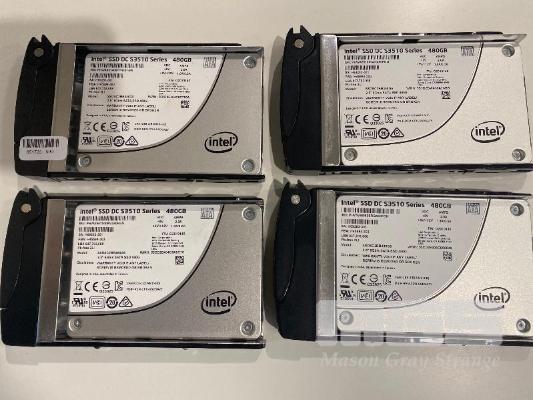 4 x INTEL 480GB SOLID STATE DRIVES, DC S3510 SERIES, SATA, 2.5" WITH CADDIES