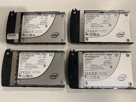4 x INTEL 480GB SOLID STATE DRIVES, DC S3510 SERIES, SATA, 2.5" WITH CADDIES