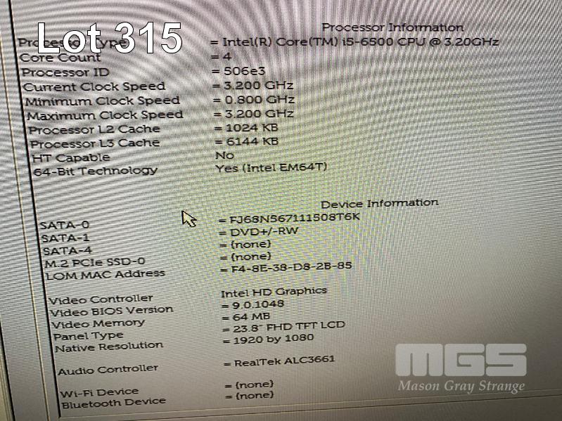 ALL-IN-ONE PC, DELL OPTIPLEX 7440, CORE i5 6500 (6TH GEN) @ 3.2GHz, 8GB DDR4 RAM, 256GB SSD, DVD-RW, INBUILT 23.8" FHD WIDESCREEN (1920x1080), INTEL HD VIDEO, WEBCAM, 8 x USB, WINDOWS 10 HOME INSTALLED, KEYBOARD & MOUSE S/N:5LLWSF2