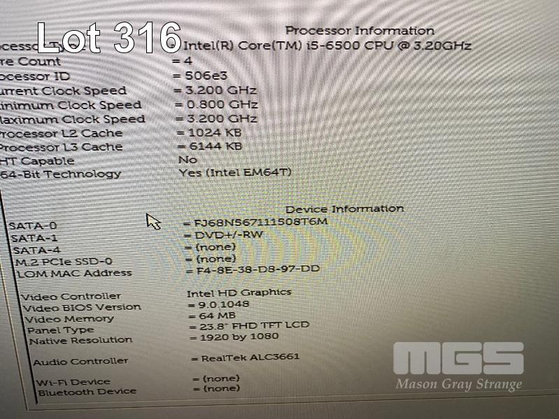 ALL-IN-ONE PC, DELL OPTIPLEX 7440, CORE i5 6500 (6TH GEN) @ 3.2GHz, 8GB DDR4 RAM, 256GB SSD, DVD-RW, INBUILT 23.8" FHD WIDESCREEN (1920x1080), INTEL HD VIDEO, WEBCAM, 8 x USB, WINDOWS 10 HOME INSTALLED, KEYBOARD & MOUSE S/N:5LNWSF2