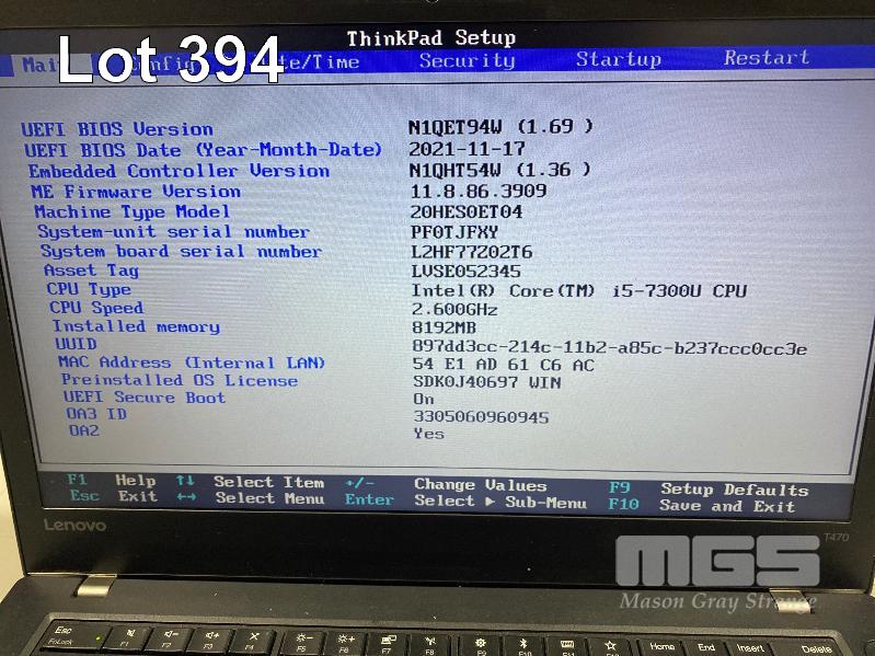 LAPTOP, LENOVO THINKPAD T470, TYPE 20HE, CORE i5 7300U (7TH GEN) @ 2.6GHz, 8GB DDR4 RAM, 256GB NVMe M.2 SSD, 14" WIDESCREEN (1366x768), INTEL HD VIDEO, Wi-Fi, BLUETOOTH, WINDOWS 10 PRO INSTALLED & POWER SUPPLY S/N:PF0TJFXY