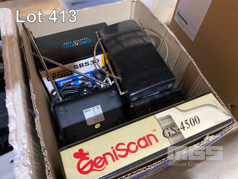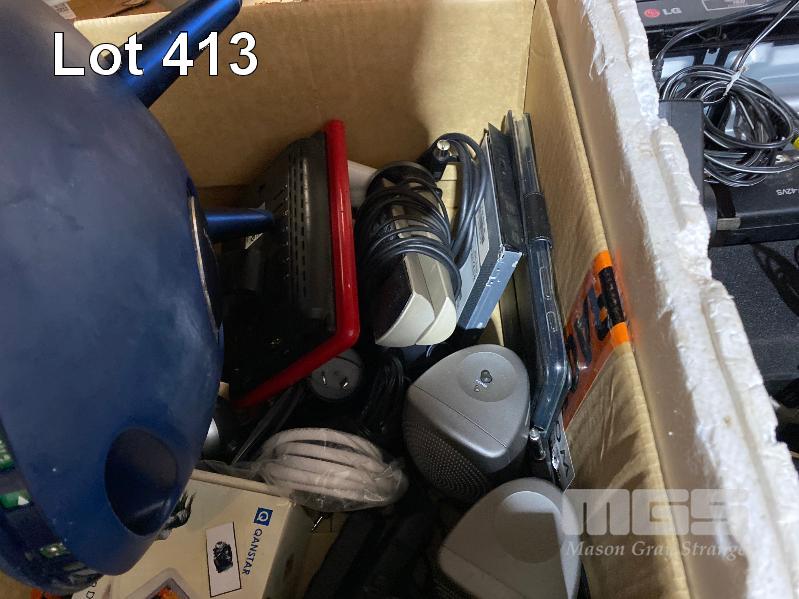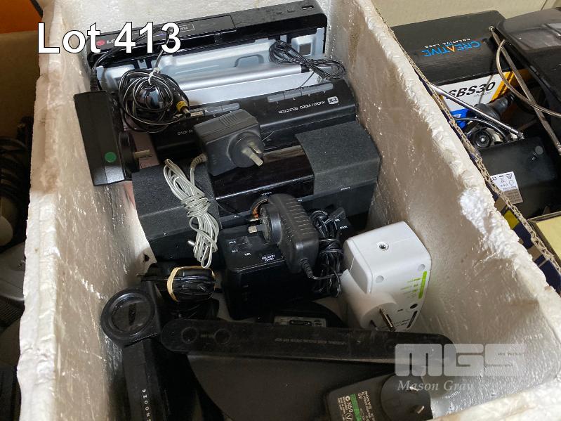 3 x BOXES ASST SUNDRY ITEMS INC. SPEAKERS, A/V EQUIPMENT, TV ANTENNAS ETC
