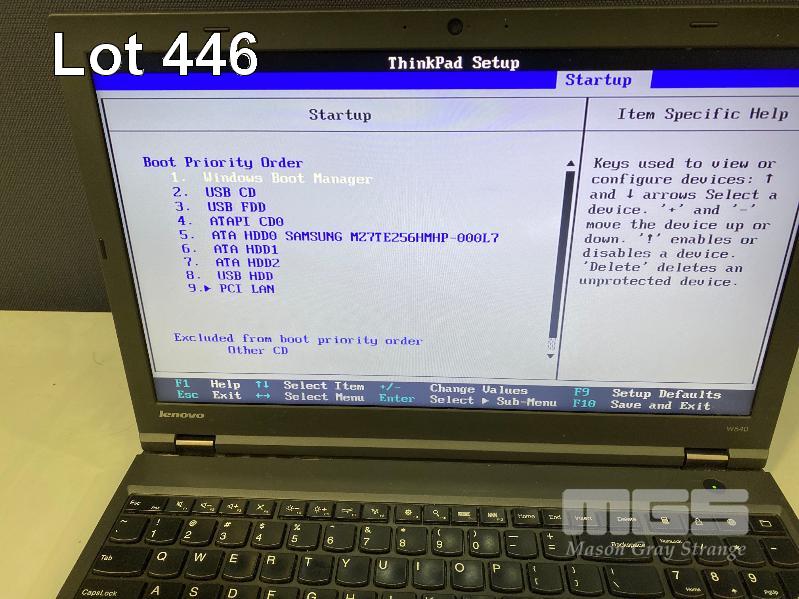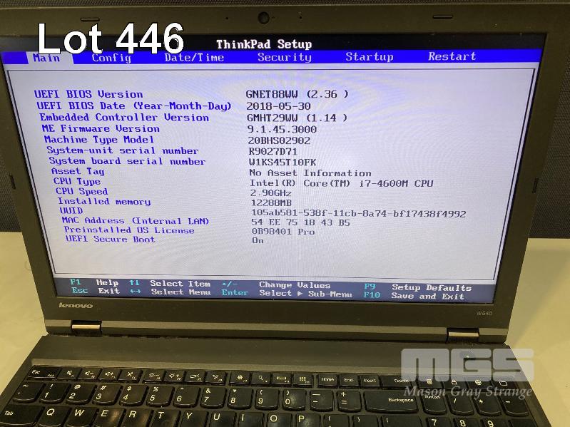 LAPTOP, LENOVO THINKPAD W540, TYPE 20BH, CORE i7 4600M (4TH GEN) @ 2.9GHz, 12GB DDR3 RAM, 256GB SSD, 15.6" WIDESCREEN (1920x1080), INTEL HD VIDEO, 2GB NVIDIA QUADRO K1100M VIDEO, Wi-Fi, BLUETOOTH, WINDOWS 10 PRO INSTALLED & POWER SUPPLY (NOTE: MARKS ON SCREEN, WHITE SPOT SCREEN BLEMISHES) S/N:R9027D71