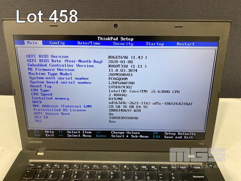 LAPTOP, LENOVO THINKPAD T460, TYPE 20FM, CORE i5 6300U (6TH GEN) @ 2.4GHz, 8GB DDR3 RAM, 500GB SATA HDD, 14" WIDESCREEN (1920x1080), INTEL HD VIDEO, Wi-Fi, BLUETOOTH, WINDOWS 10 PRO INSTALLED & POWER SUPPLY (NOTE: MARKS ON SCREEN) S/N:PC0GQUHM