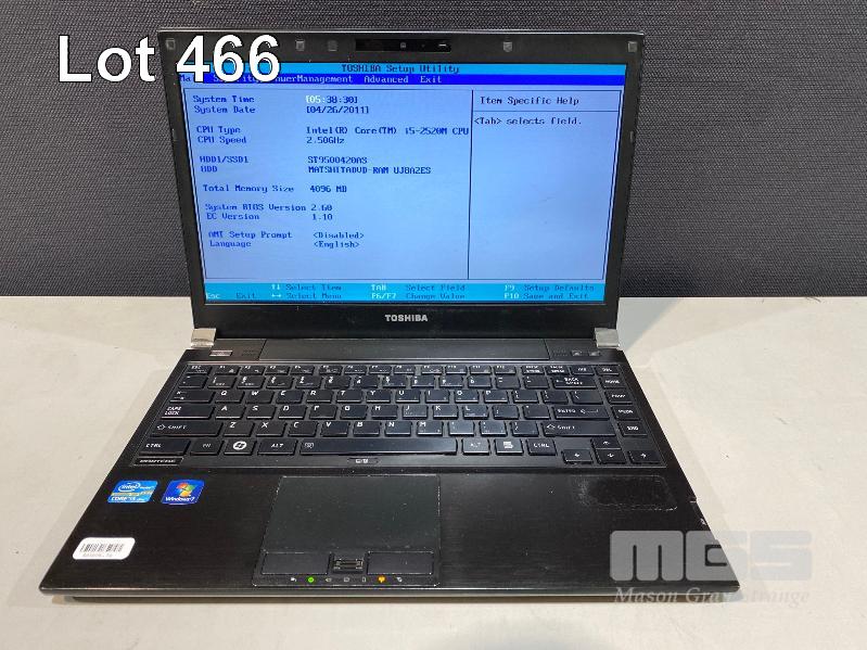 LAPTOP, TOSHIBA PORTEGE R830, CORE i5 2520M (2ND GEN) @ 2.5GHz, 4GB DDR3 RAM, 500GB SATA HDD, DVD-RW, 13.3" WIDESCREEN & POWER SUPPLY S/N:4B136090H
