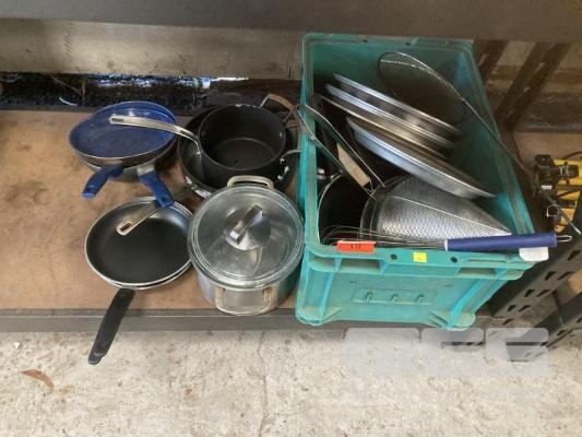 ASSORTED POTS, PANS & KITCHEN UTENSILS