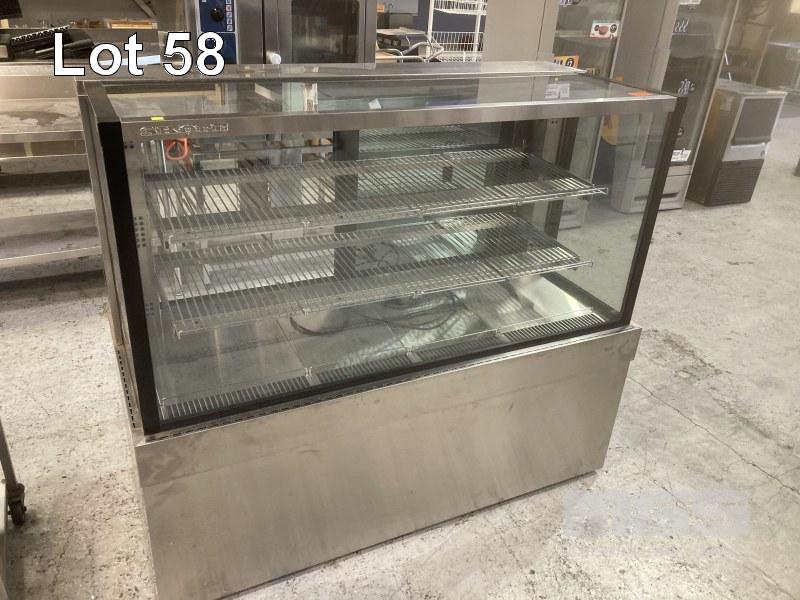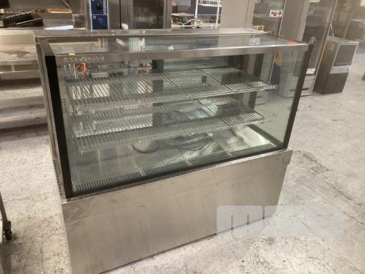 SQUARE GLASS CAKE DISPLAY, SKOPE MOD: FDM1500I 150cm, STAINLESS STEEL CASED SELF CONTAINED UNIT, 240V