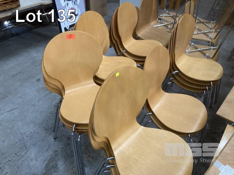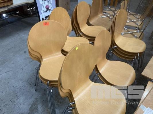 36 x CAFE CHAIRS, ONE PIECE MOULDED TIMBER, CHROME FRAME