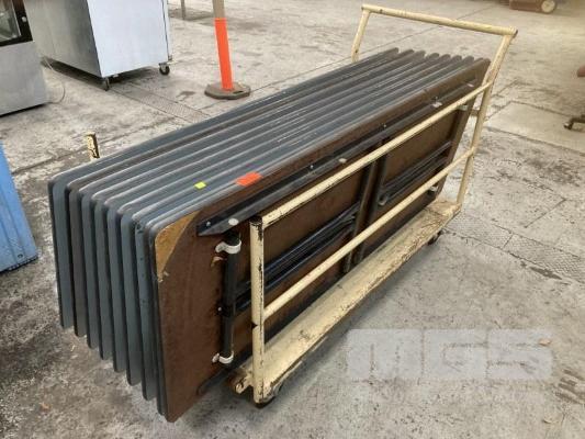 9 x TRESTLE TABLES, EACH 180 x 75cm, LAMINATE TOP & TROLLEY