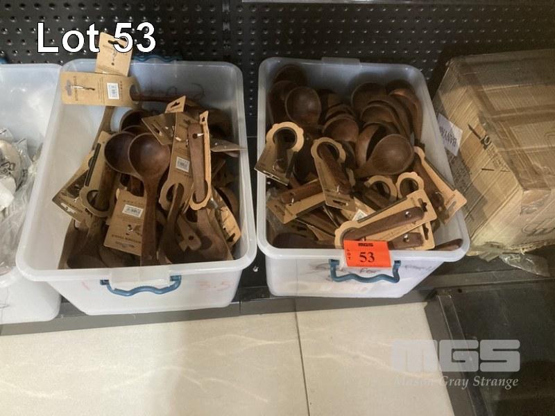 WOODEN LADLES, 2 x TUBS