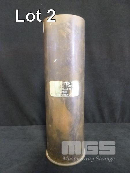 BRASS M14 ARTILLERY CASING, 105mm, PRESENTED TO CAPT M. SMITH FROM THE 108 FD BTY