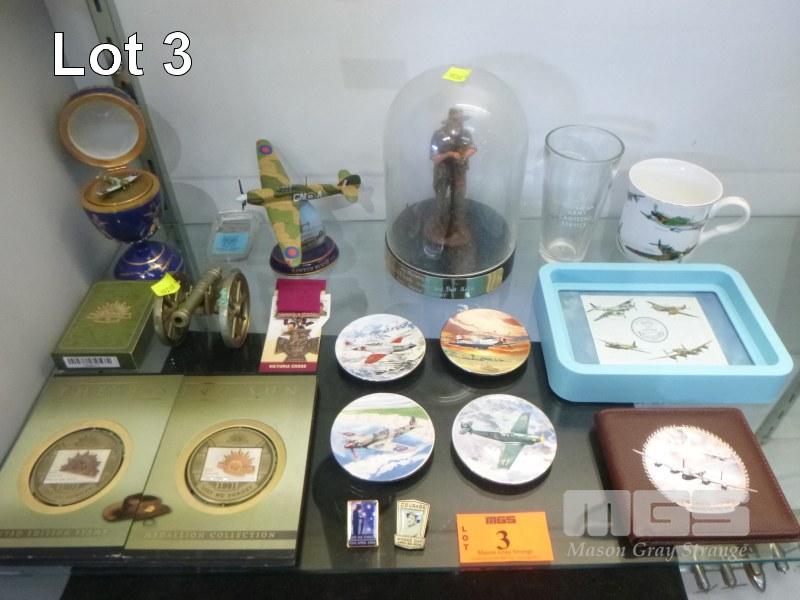 MILITARIA, DISPLAY PLATES, FIGURINES, STAMPS, PLAYING CARDS ETC