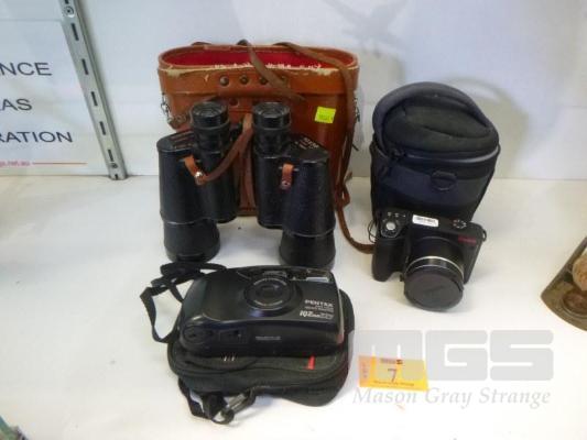 KODAK EASYSHARE DIGITAL CAMERA, Z8612 IS, (NO ACCESSORIES), PENTAX EZY CAMERA & PAIR BINOREX BINOCULARS