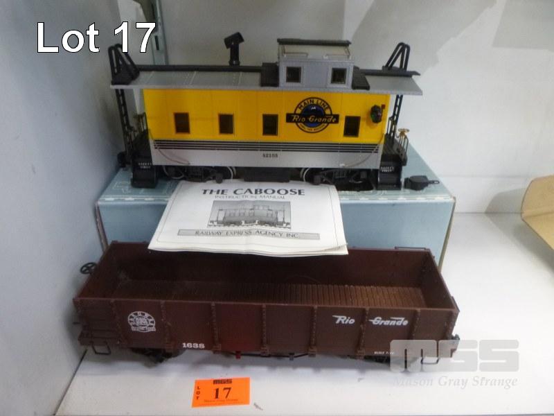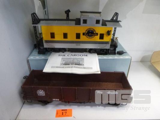 2 X TRAIN CARRIAGES, G GAUGE, RIO GRANDE MAINLINE CABOOSE & SCENIC LINE FREIGHT CARRIAGE