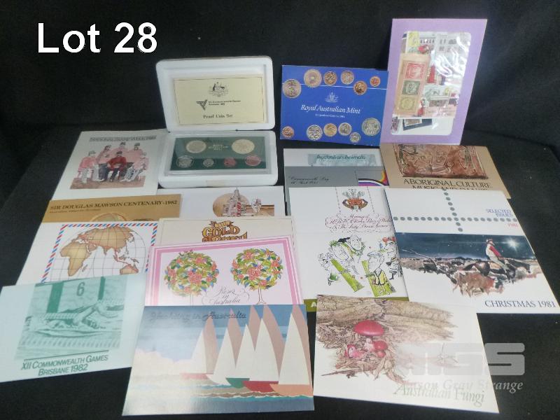 1982, ROYAL AUSTRALIAN MINT, PROOF COIN SET, 'XII COMMONWEALTH GAMES BRISBANE', 1984 UNC COIN SET & ASSORTED AUSTRALIA POST, MINT STAMP SETS