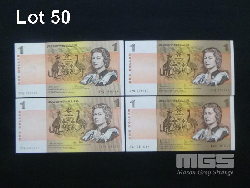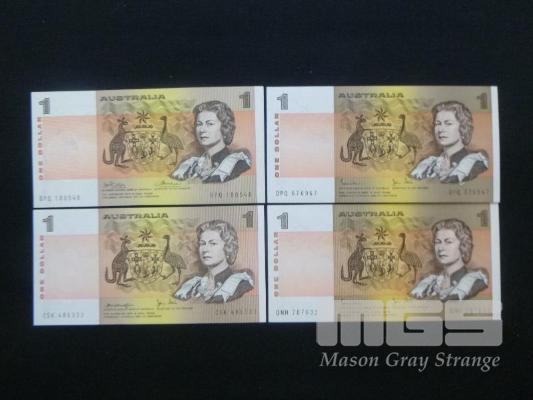 4 X AUSTRALIA, $1 BANK NOTES, INC; PHILLIPS/WHEELER, BPQ 180548 KNIGHT/STONE, CSK 486333 JOHNSTON/STONE, DPQ 676967, DNH 707632