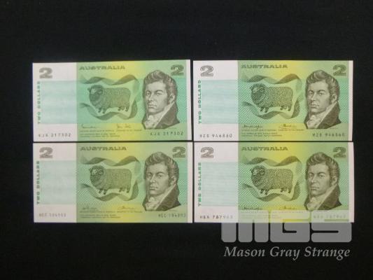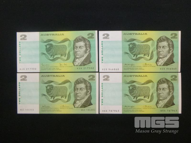 4 X AUSTRALIA, $2 BANK NOTES, INC; JOHNSTON/STONE, KJX 217302 KNIGHT/WHEELER, HSA 787963, HZS 946860 PHILLIPS/WHEELER, HEC 104903