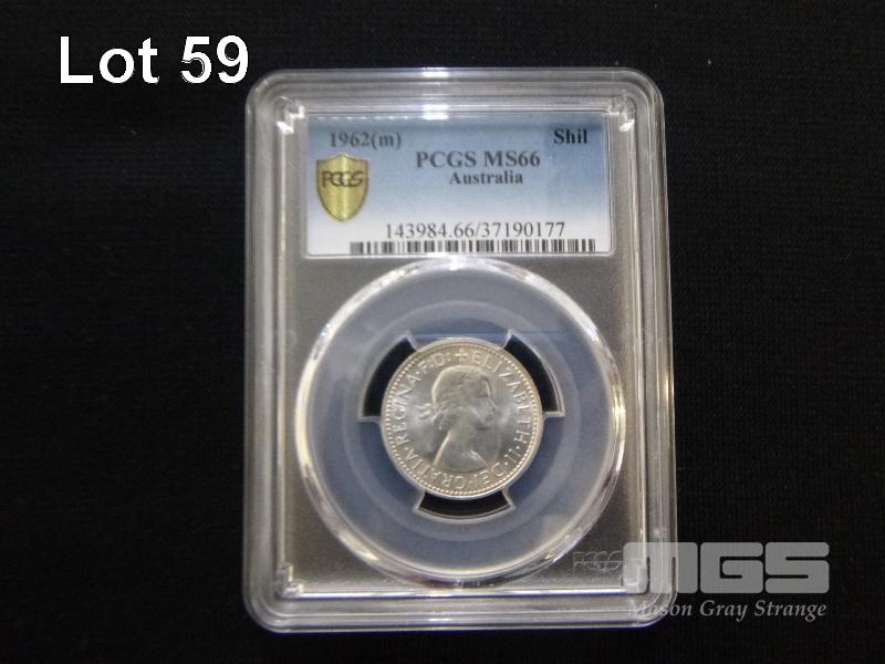 SLABBED (PSGS), AUSTRALIA 1962(m) SHILLING, MS66, (GEM-UNC)