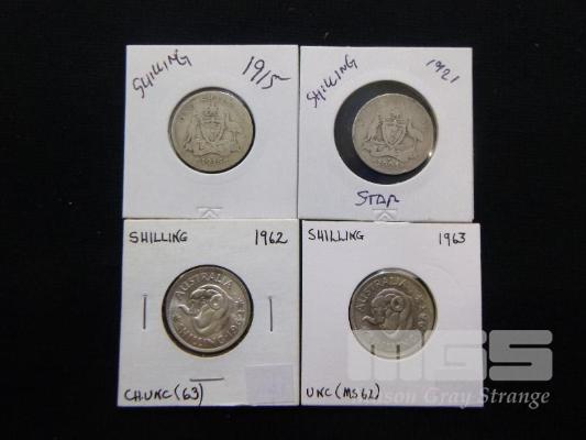 4 X AUSTRALIA SHILLINGS, INC; 1915, 1921, 1962, 1963