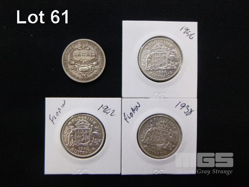4 X AUSTRALIA FLORINS, INC; 1927 PARLIAMENT, 1938, 1942, 1946