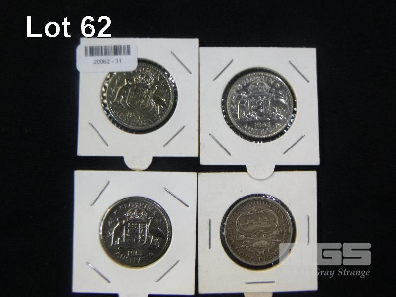 4 x AUSTRALIAN FLORINS, 1927 PARLIAMENT HOUSE, 2 x 1946 & 1953