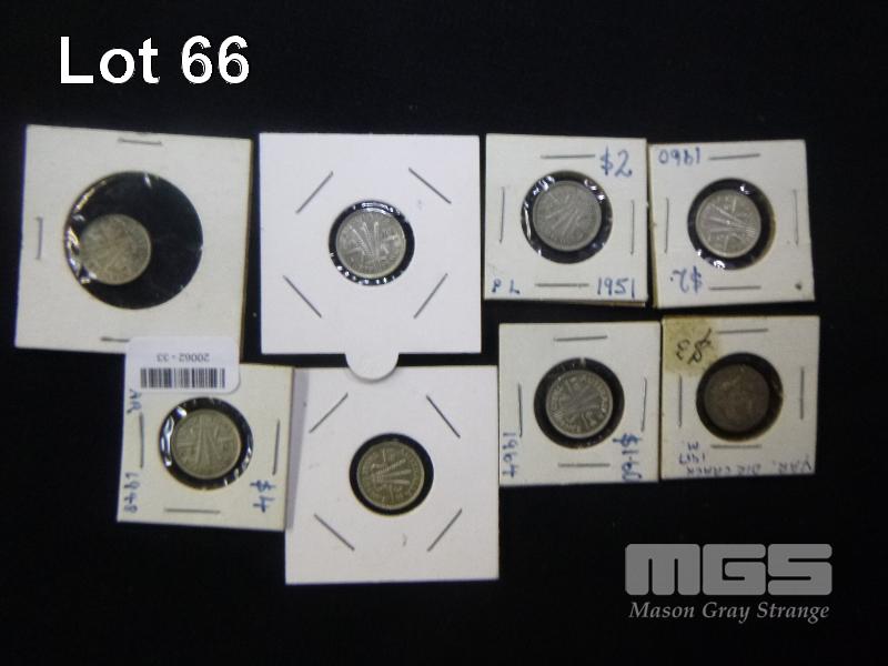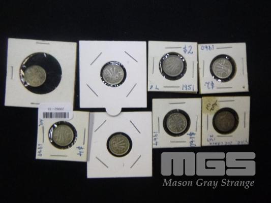 8 x AUSTRALIAN THREEPENCE, 1917, 38, 2 x 1948. 51, 54. 60 & 64