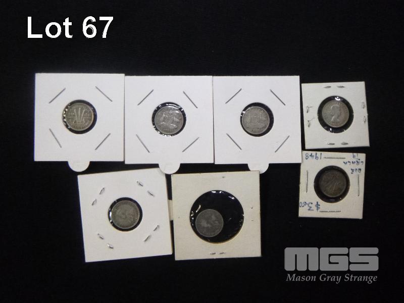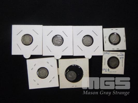 7 x AUSTRALIAN THREEPENCE, 1910, 17, 34, 36, 2 x 1948 & 59