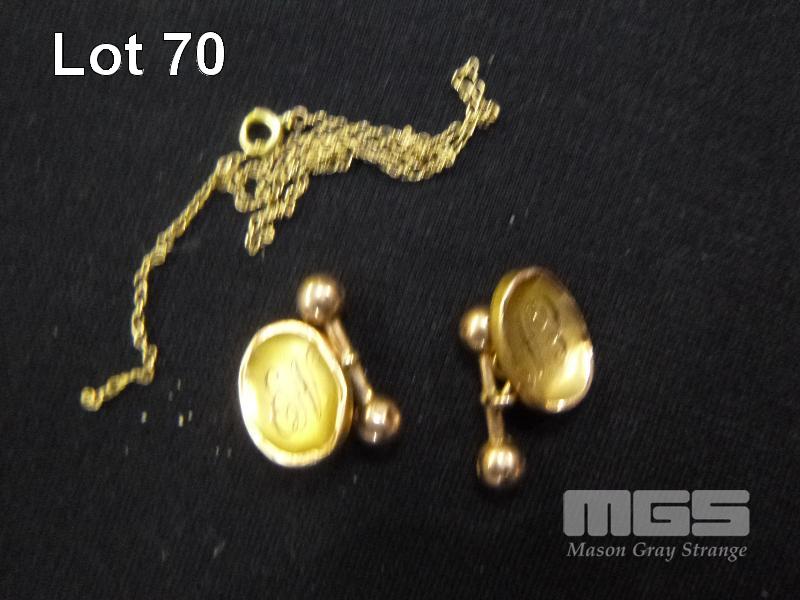 PAIR OF CUFFLINKS, FINE GOLD CHAIN (BROKEN) 9K 4.5 GMS