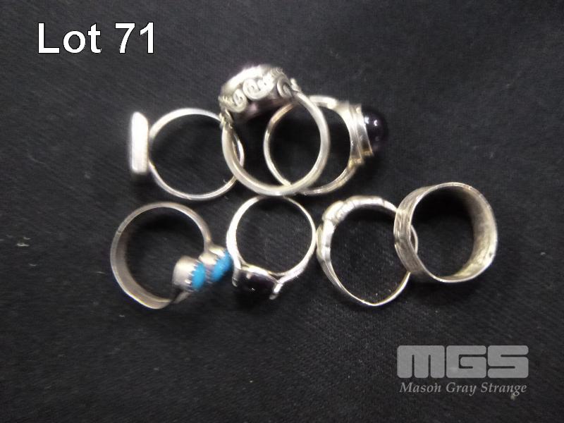 7 X SILVER RINGS, MOST MARKED 925, SOME UNMARKED, 36 GMS