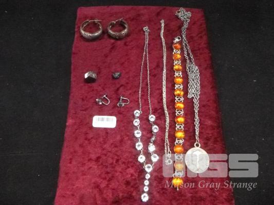 ASSORTED SILVER JEWELLERY, MARKED 925, STG, ETC, WITH 2 X UNCUT GEM STONES