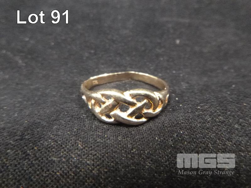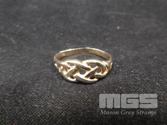 GOLD, CELTIC KNOT RING, MARKED 375, 1.69 grams (BENT)