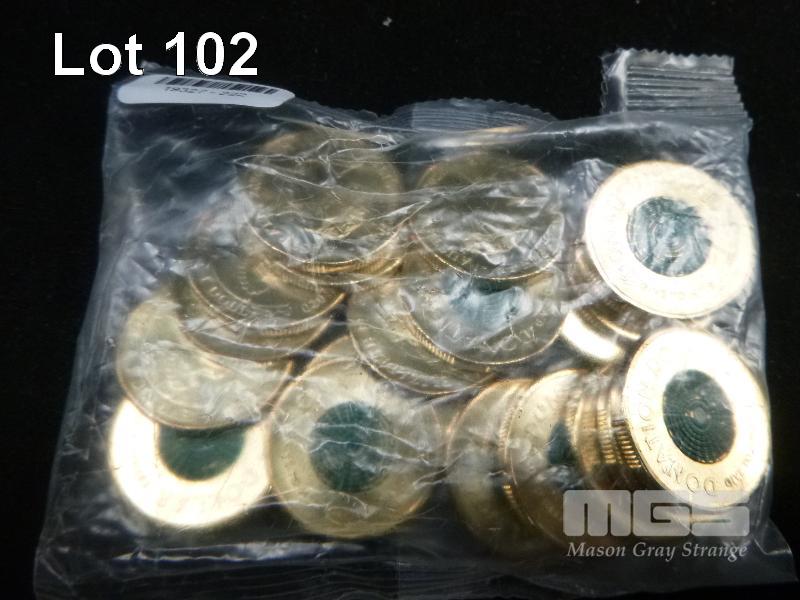 1 X BAG OF 20 X AUSTRALIA, 2020, COLOURED, $1 DONATION COINS