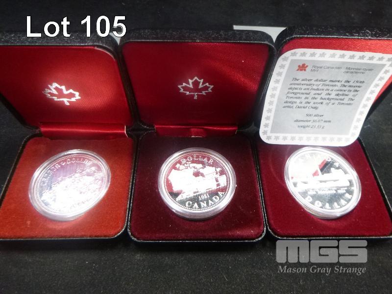 3 X THE ROYAL CANADIAN MINT, SILVER PROOF COINS, 500, INC; 1980 DOLLAR, 1981 DOLLAR, 1984 DOLLAR