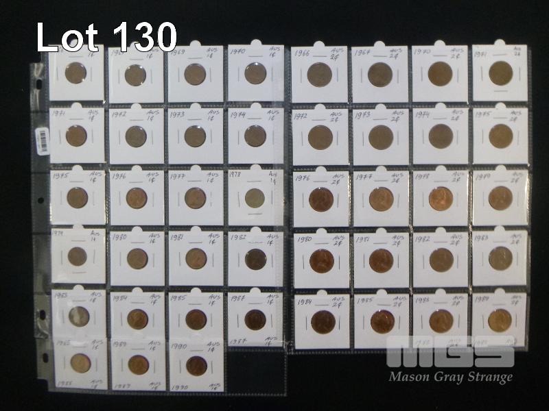 23 X AUSTRALIA, 1c COINS INDIVIDUAL DATES FROM 1966-1990 & 20 X AUSTRALIA, 2c COINS INDIVIDUAL DATES FROM 1966-1989