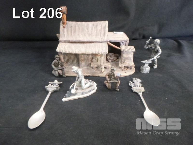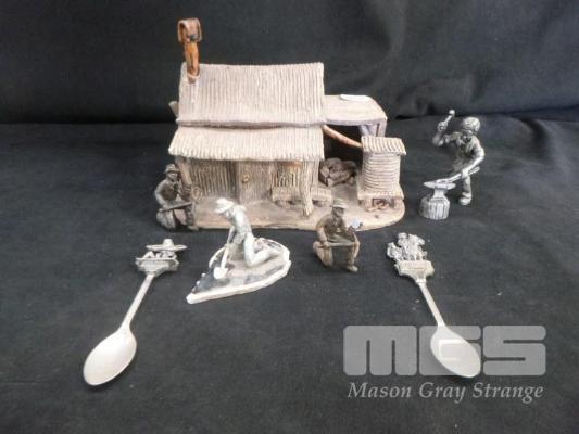 PROSPECTING FIGURINES, SPOONS & CLAY HUT