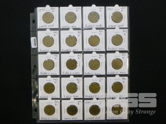 20 X AUSTRALIA, $1 ERROR COINS, INC; RABBIT EARS, SPEW ROO & WAVE CUD
