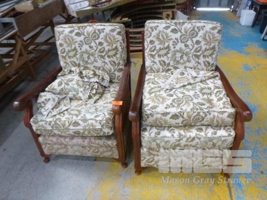 PAIR OF TIMBER FRAMED CANE SIDED ARMCHAIRS