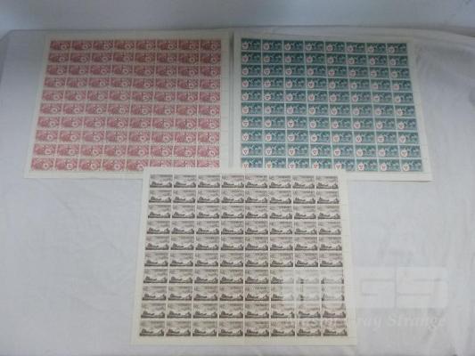 3 X AUSTRALIA, PRE-DECIMAL, BLOCK, MINT, STAMP SHEETS