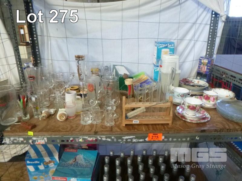 ASSORTED GLASSWARE, TEA TRIOS, ETC