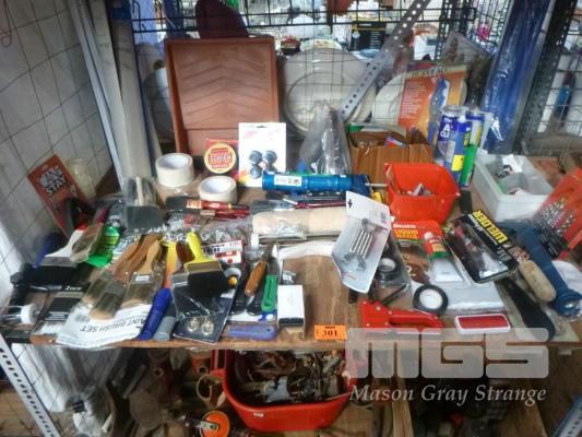 ASSORTED PAINT BRUSHES, TOOLS & SHED STOCK