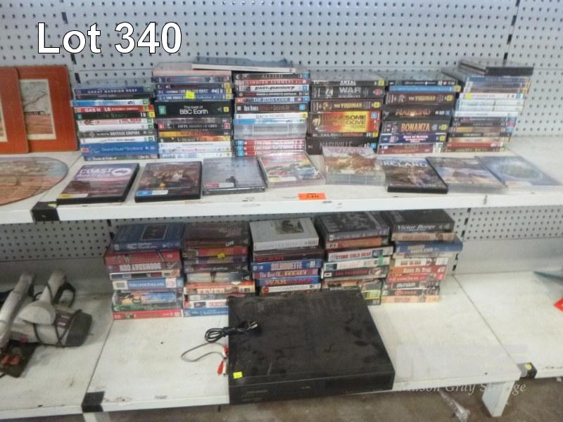 ASSORTED DVD'S, VHS TAPES & SHARP VCR (NO REMOTE)