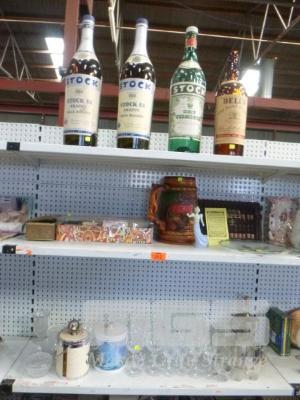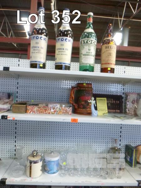 ASSORTED GLASSWARE, BAR WARE, BELLS BOTTLES, DRINK COASTERS, ETC, 3 x SHELVES