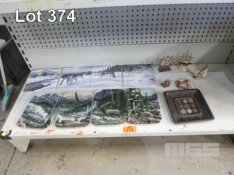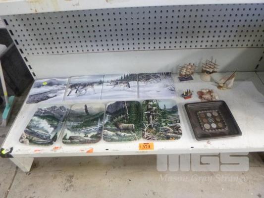 SET 4 BRADFORD EXCHANGE WALL MOUNT TILES, ARCTIC PASSAGE, SET OF 4 BRADFORD EXCHANGE DISPLAY PLATES, HEART OF THE ROCKIES & SMALL SHIPS MADE FROM SEA SHELLS