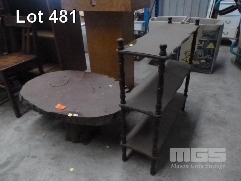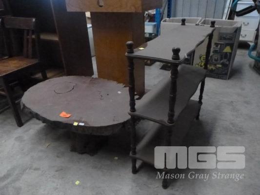 RED GUM SLAB COFFEE TABLE WITH WHAT NOT, 3 TEIR