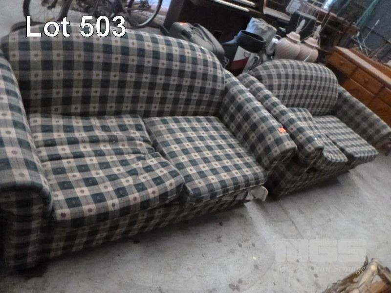 PAIR GREEN/BEIGE FABRIC 2 SEATER LOUNGES