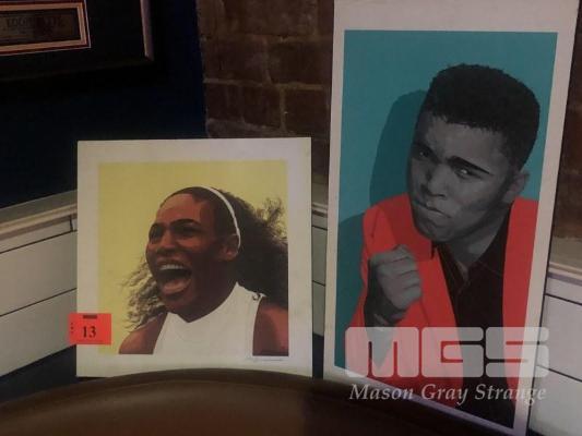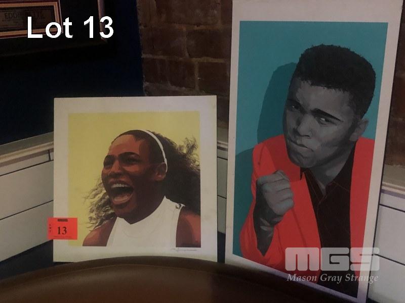 PAIR BLOCK MOUNTED PRINTS, MOHAMED ALI & SERENA WILLIAMS, SIGNED BY ARTIST