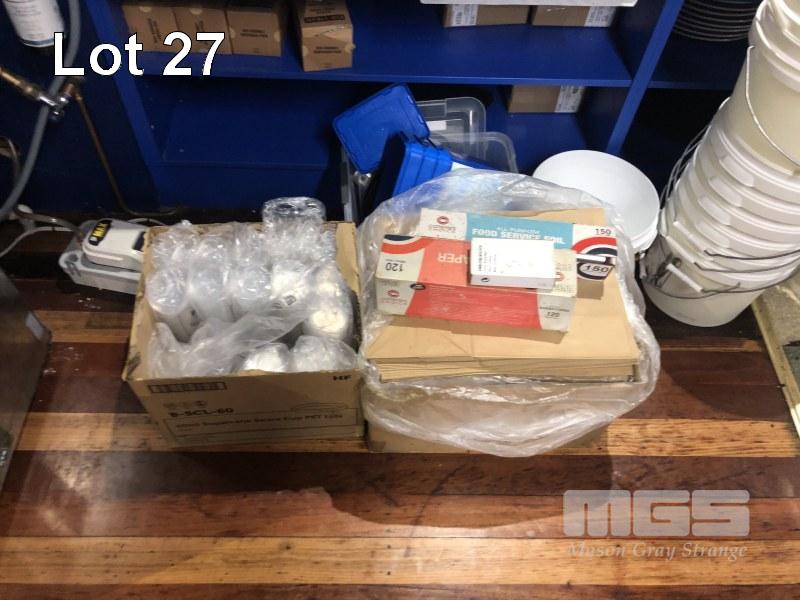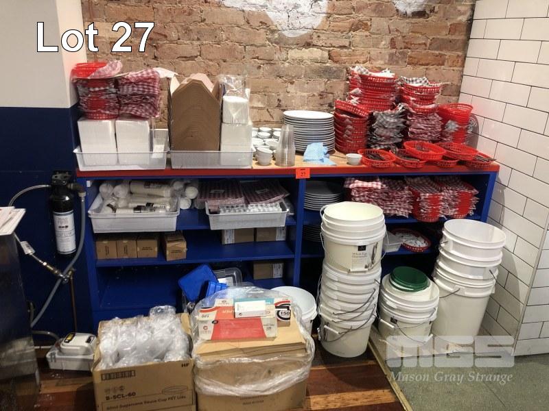 QUANTITY PLATES, CUTLERY, TABLE TRAYS, STRAWS, BUCKETS, NAPKINS, MESH TRAYS, ETC